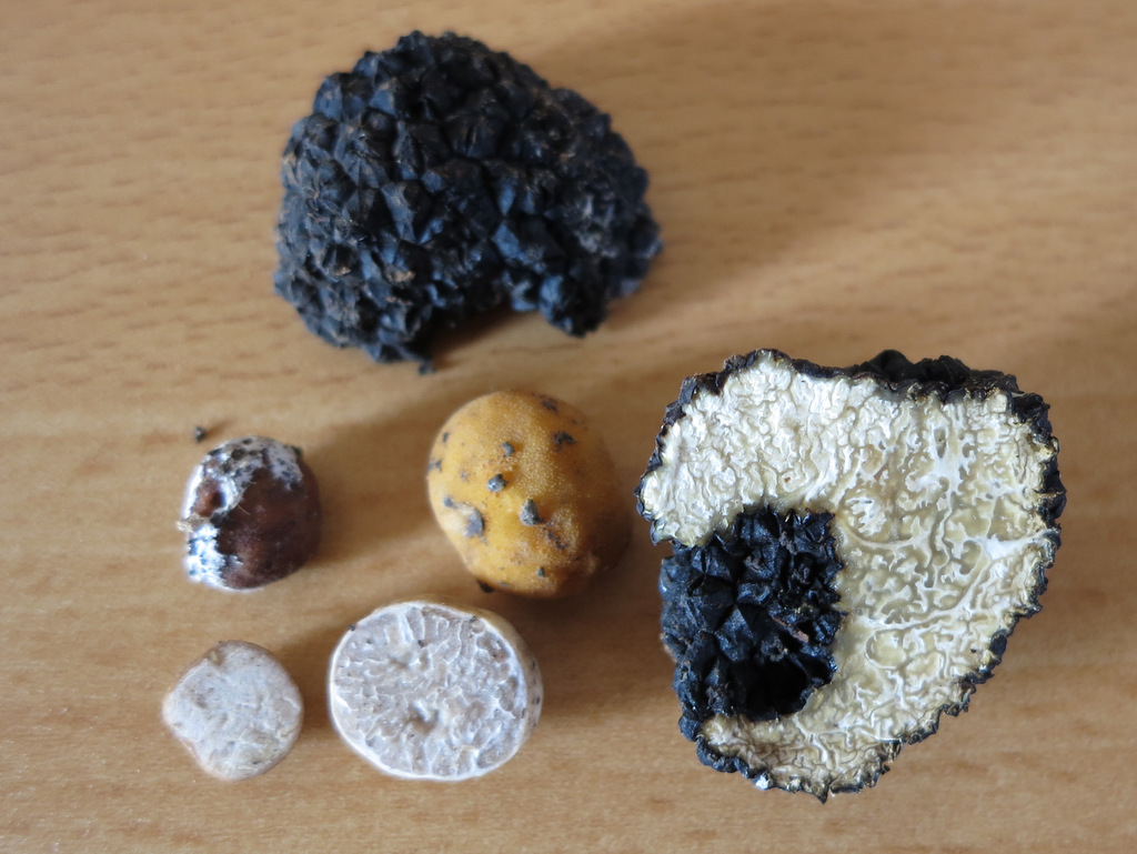 Um so größer meine Freude, dass ich gestern die Gelegenheit bekam, an einer Trüffel-Exkursion von der Thüringer Arbeitsgemeinschaft Mykologie e.V.-ThAM teilzunehmen. Eine Sternstunde für meine Leidenschaft. Während der fünf Stunden fanden wir fünf verschiedene Trüffel: Graue Erdnuss, Hohltrüffel, Rotbraune Trüffel, Weißtrüffel und Sommer-Trüffeln. Der Lerneffekt war hoch, herzlichen Dank an meine kundigen Führer.
