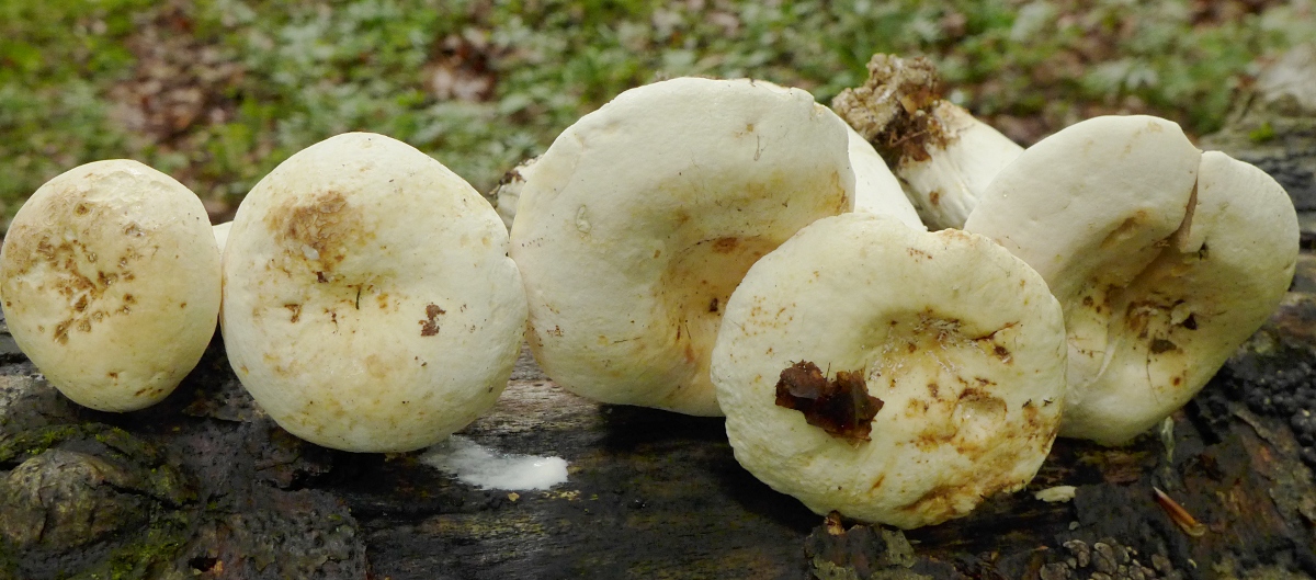 Vorweg: auch hier gibt es zwei sehr ähnliche Arten, Lactifluus vellereus soll der (bei uns) häufigere Pilz sein, mit fast milder Milch (Fleisch mit Milch ist sehr scharf, keine leuchtende Gelbfärbung mit KOH) und Lactifluus/ Lactarius bertillonii (mit auch solo brennend scharfer Milch und Verfärbung mit KOH).