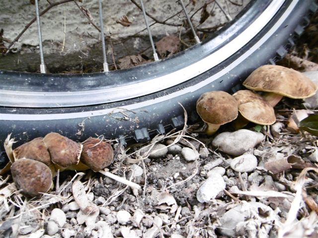 Gestern kamen die Eichen-Filzröhrlinge unter dem Reifen vom Fahrrad raus.