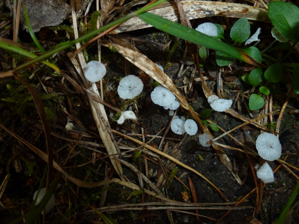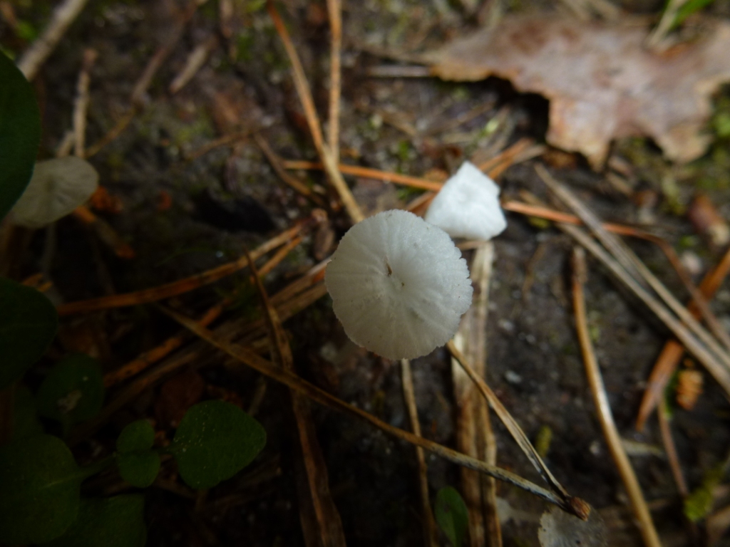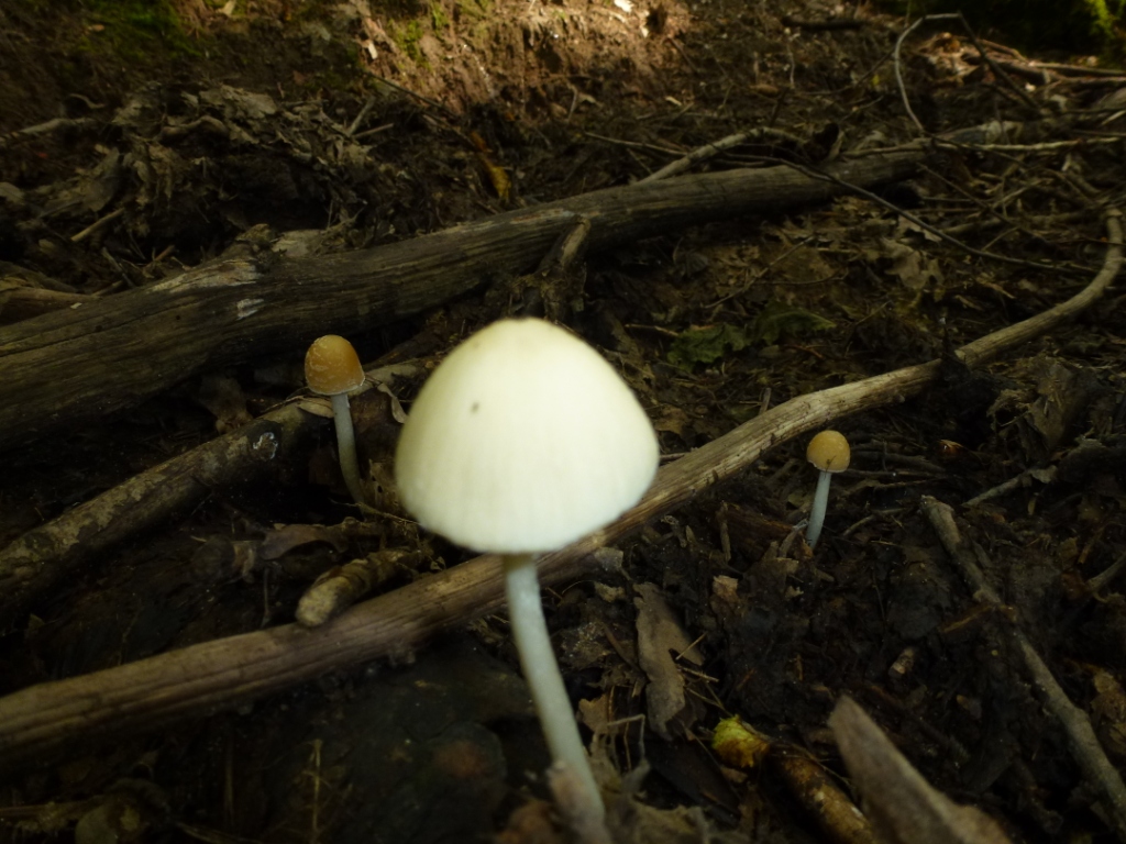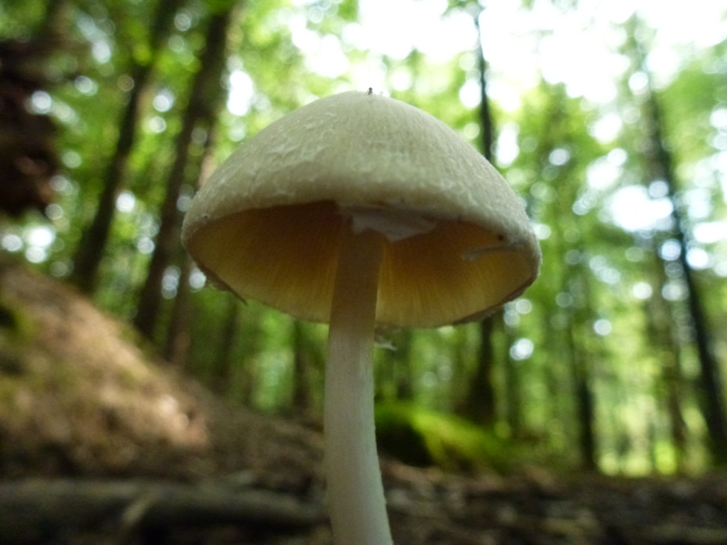 Hier der im Vordergrund stehende weiße Pilz etwas größer