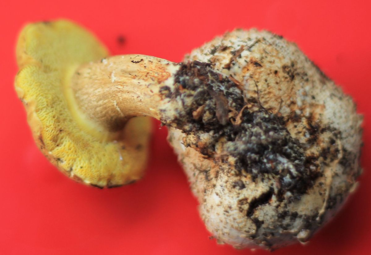 PS: Ach ja, soll beim Pfirsichfarbenen Filzröhrling (Xerocomus persicolor) der Stiel unten beim Aufschneiden kanariengelb sein?