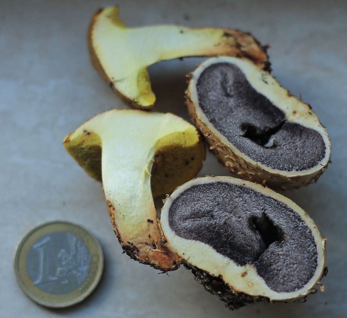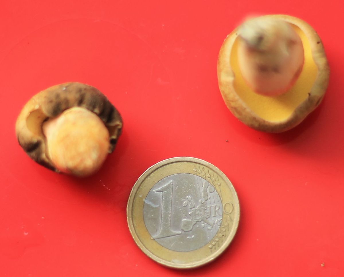 Die Schnittstelle war später bei Röhren leicht blau angelaufen. Stielbasis ist spitz. Röhren dottergelb.