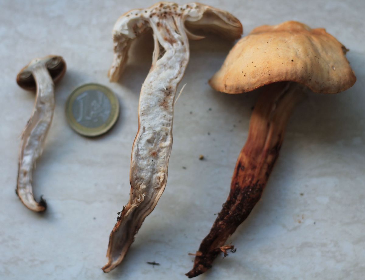 Die Schnittstelle war später bei Röhren leicht blau angelaufen. Stielbasis ist spitz. Röhren dottergelb.