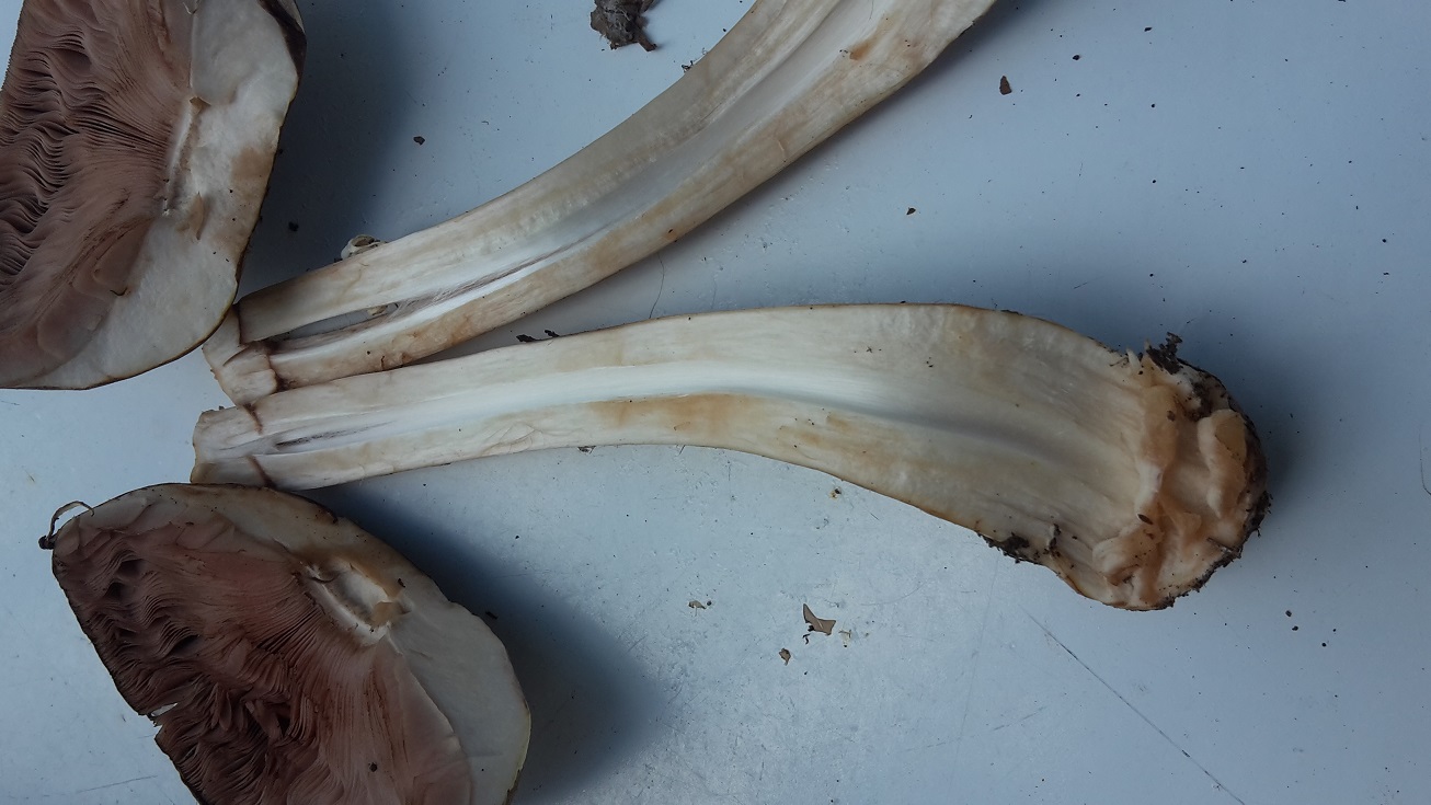 erstmal sorry, dass ich das Schnittbild der Egerlinge bei den vielen Bildern oben übersehen hab. Natürlich schließe ich mich den anderen an. Der Fund gehört definitiv in die Waldchampigruppe.