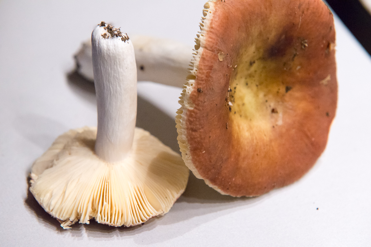 Dein Täubling: Für mich sieht das so aus, als ob die Huthaut nicht die Lamellen komplett überdeckt. Soll heißen, dass die Lamellen unter der Huthaut übersehen. In dem Falle wäre es R. vesca. Hast du die Aufnahmen bei Kunstlicht gemacht? Die Hutfarbe ist etwas untypisch.