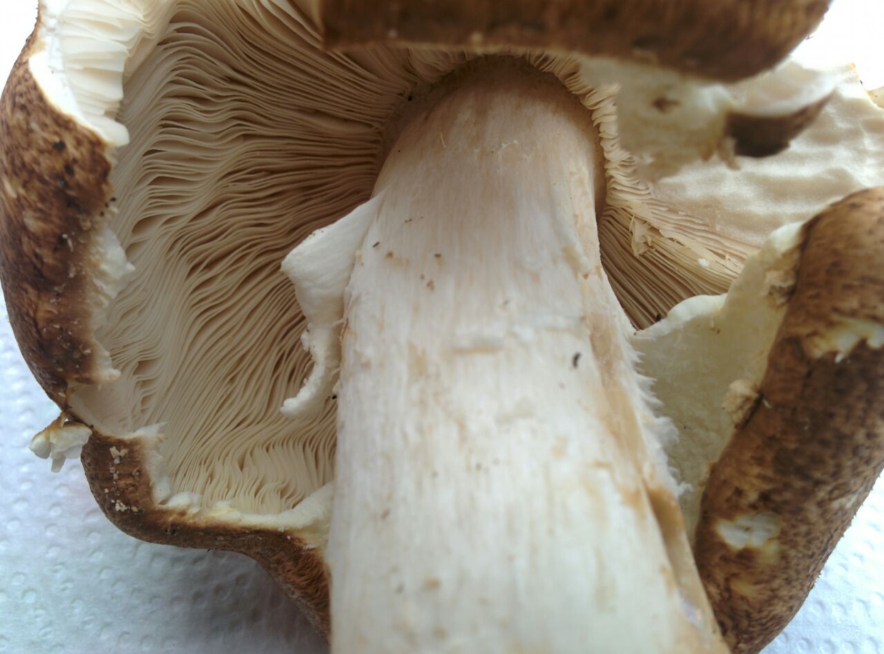Aber immerhin sieht man ihn deutlich gilben. Und die Anatomie der Hutschuppen passt zu keiner anderen gilbenden Art mit geschupptem Hut, finde ich. Auch nicht zu den Karbolarten (Perlhuhn und Rebhuhn).