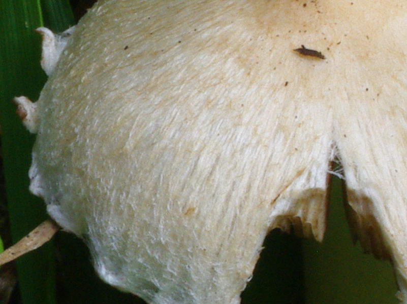 Hut fein filzig, am Rande der filz etwas aufreißend, ich meine auch etwas vom Velum an den Ränder zu sehen.