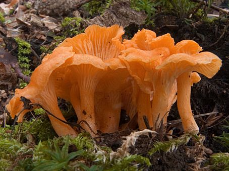 Das ist doch der Falsche Pfifferling, oder? Die Farbe war so richtig kräftig orange, was eindeutig für mich der Falsche Pfifferling ist. Aber da stören mich die weit in den Stiel runter laufenden Lamellen/Leisten, was wieder für einen Pfifferling spricht! Alle Pilze wuchsen unmittelbar zusammen/neben einander in einem Mischwald bestehend aus Fichte, Birke, Buche.