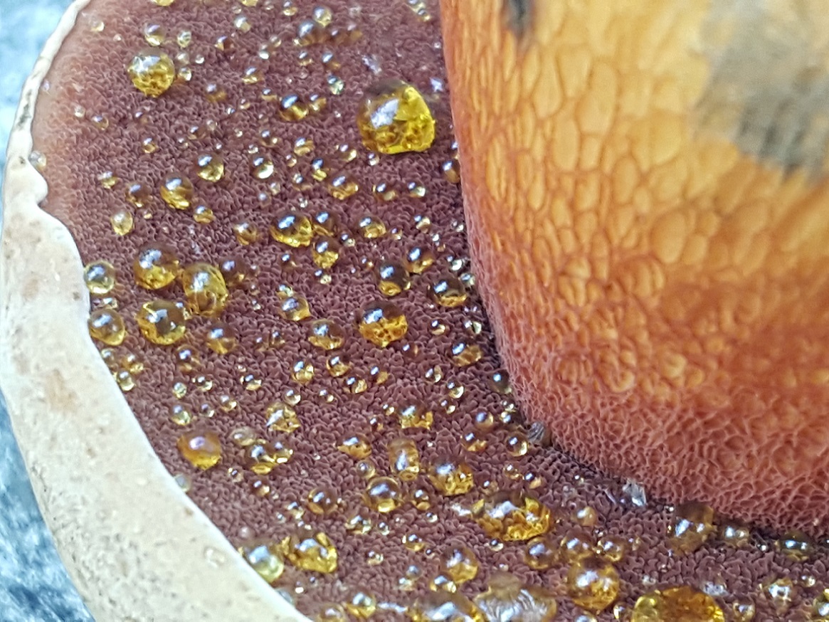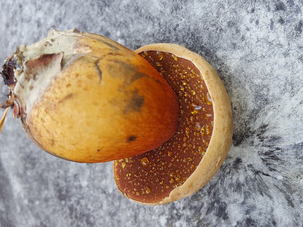 jedenfalls sind solche Tropfen bei Röhrlingen oft Zeichen von irgendeiner Schädigung.