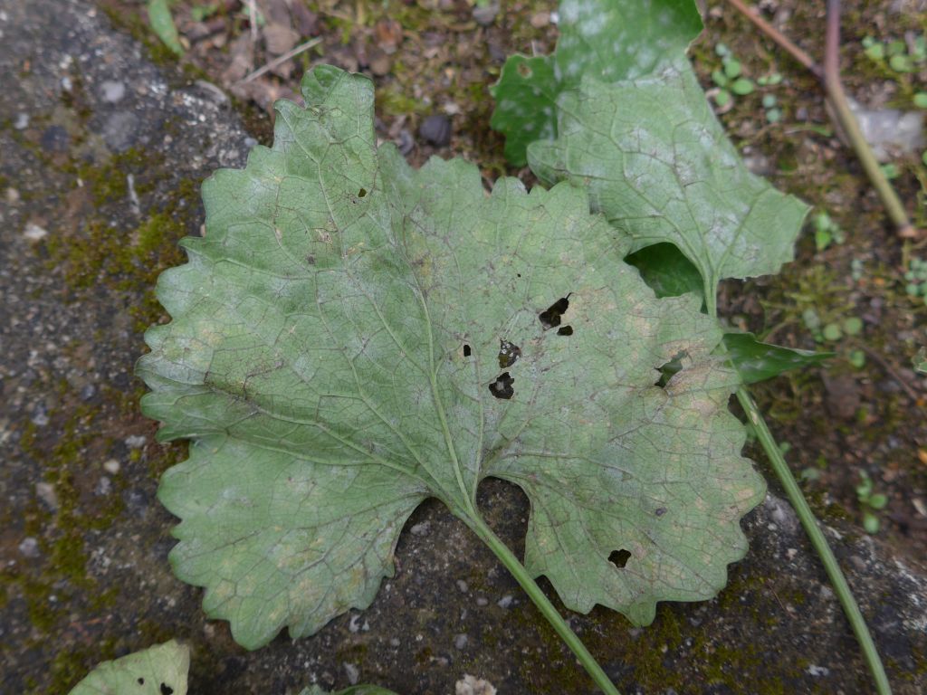 Nein nicht wirklich, aber den Mehltau an der Pflanze würde ich gerne rauskriegen. Das ist einfach; ich brauche nur die Gattung der Pflanze. Das ist auf alle Fälle was sehr häufiges. Pflanzen mit solchen herförmig geformten, gesägten Blättern sehe ich viel. Eine Blüte oder Früchte gabs nicht. Was ist das?