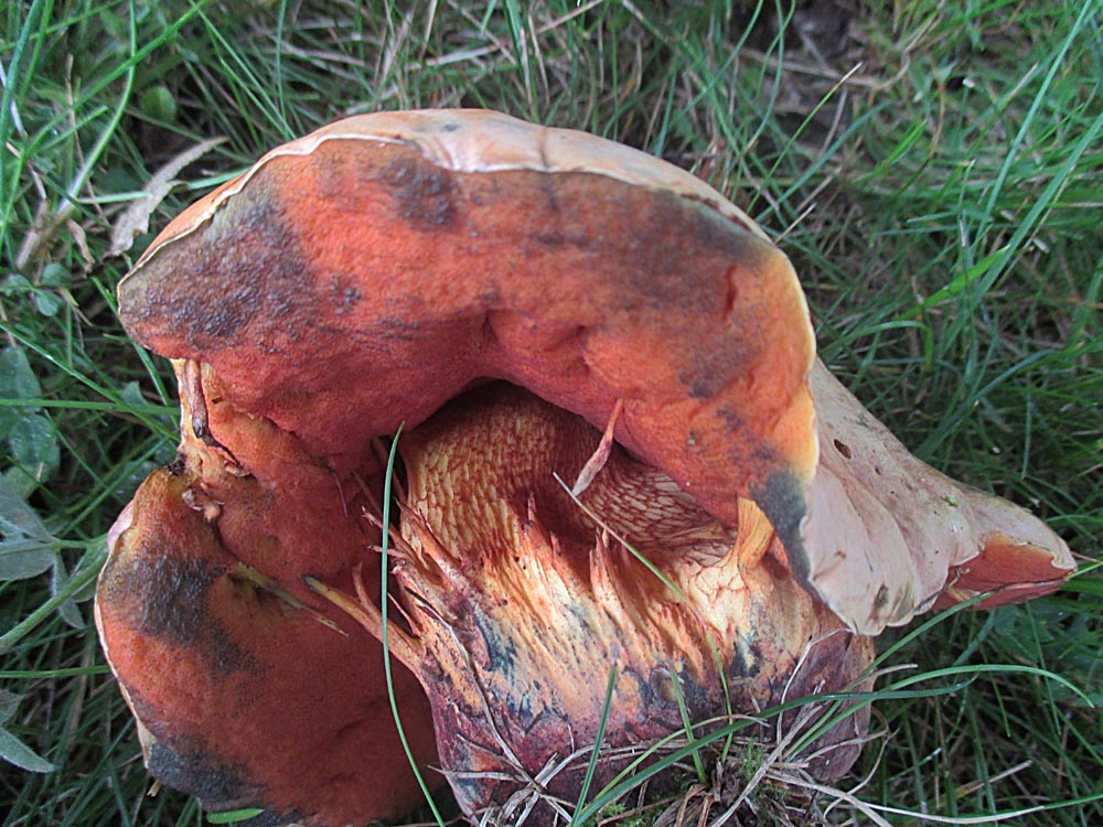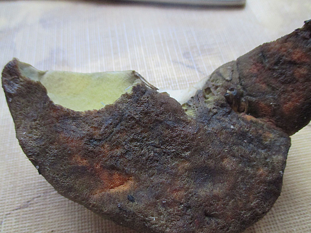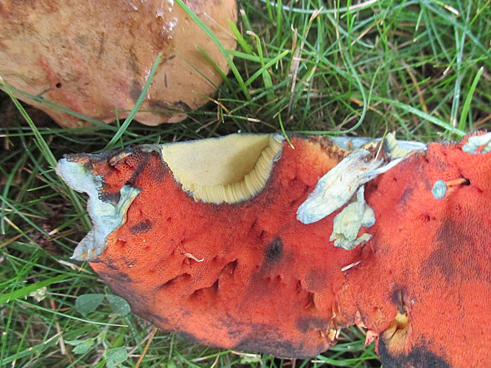 der braune Bereich in der Hutmitte ist von der Sonne verbrannt. Die typischen Hutfarben erkennt man ja noch auf einigen Bildern. Ein gelber Röhrenboden ist bei B. luridus nicht soo selten. Schätzungsweise in jeder zweiten bis dritten Kollektion sind mal einige dabei. Ich schaue aber auch nur bei etwa jeder zweiten bis dritten Kollektion danach.