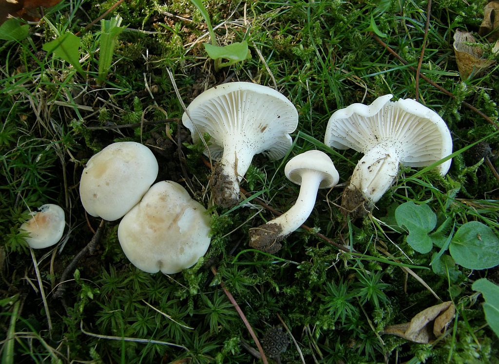 Und dazwischen hier und da schicke Grüppchen vom Weißstieligen Rötling (Entoloma lividoalbum):