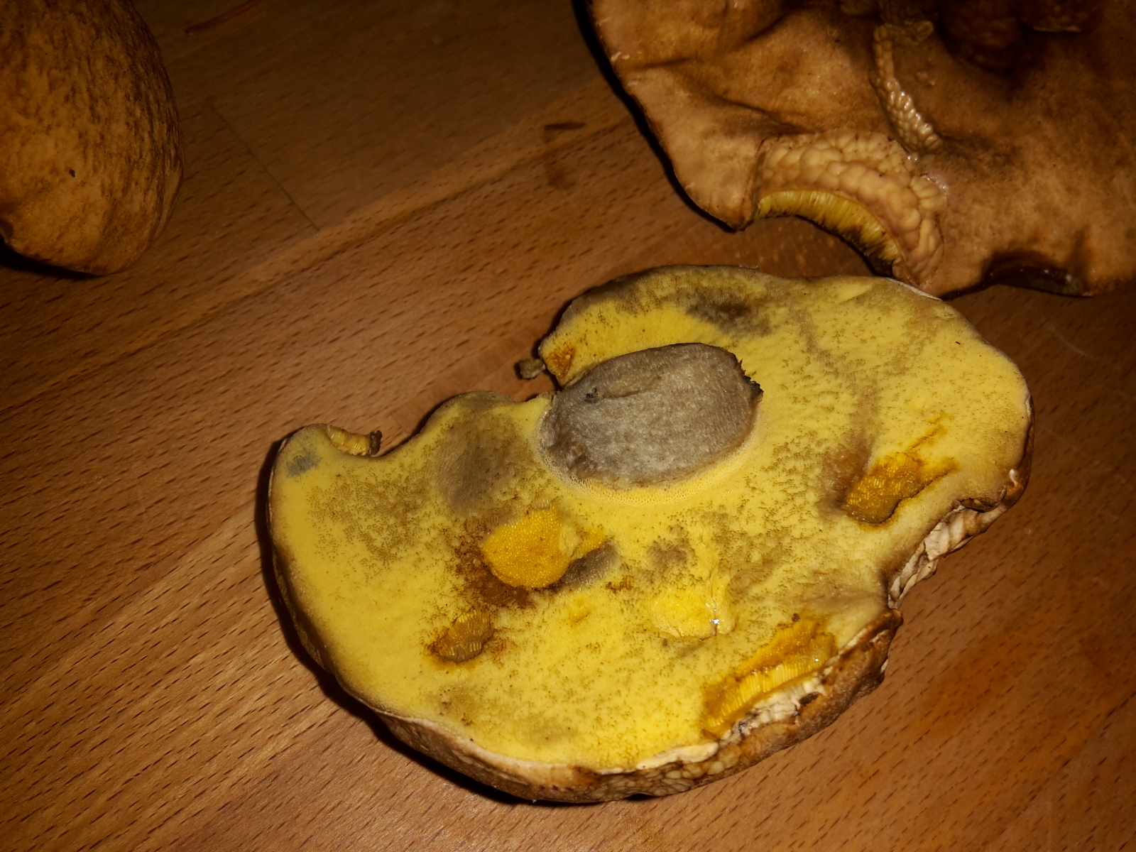 du findest das die Pilze lecker riechen!? Ich finde Schönfußröhrlinge (die sehe ich hier auch) riechen unangenehm, etwas ähnlich wie Petroleum.........nö, die hier riechen wie Maronen oder Hexenrohlinge