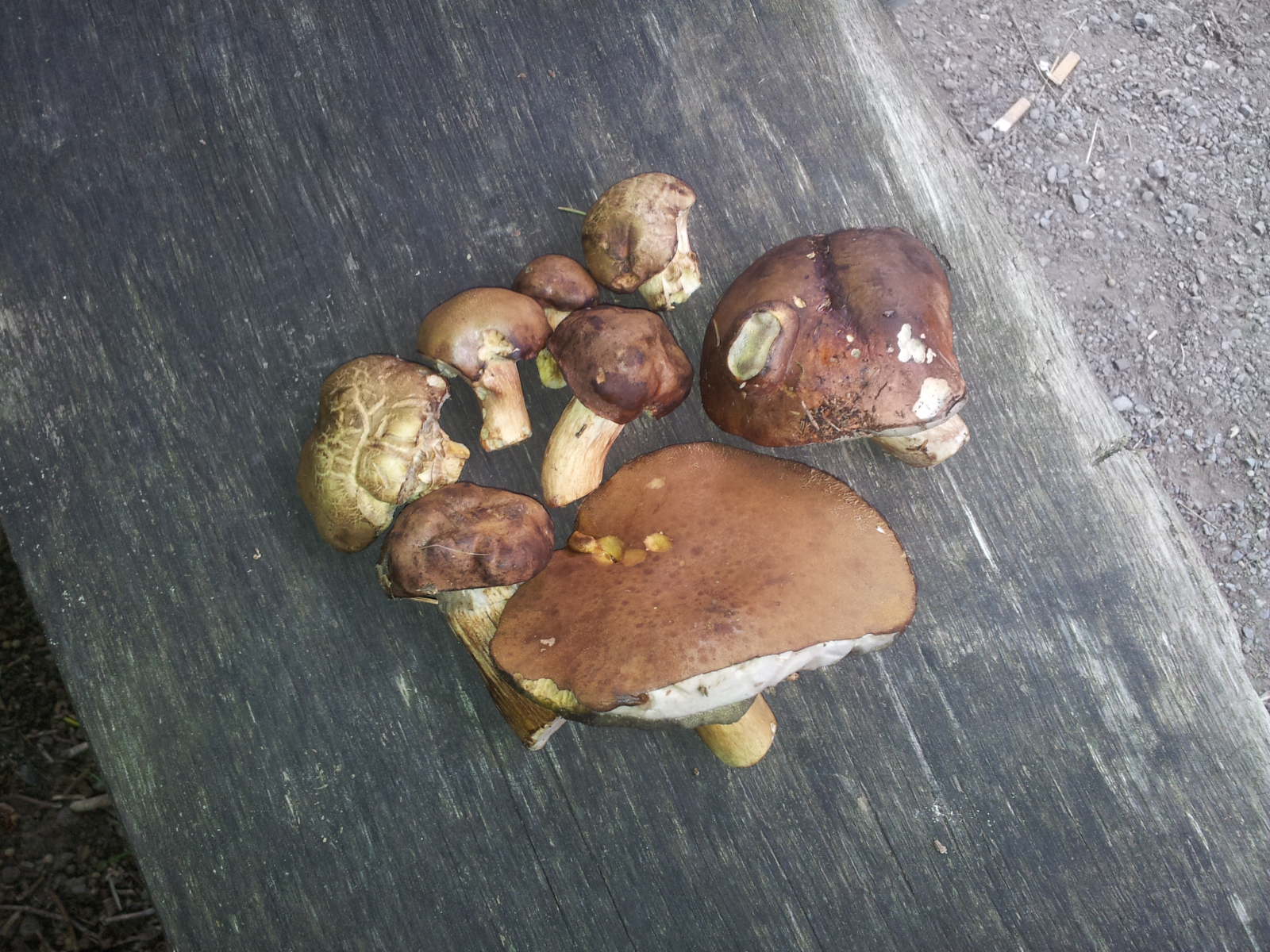 Links auf dem 1. Bild, der mit dem rissigen Hut, der wird dann nochmal interessant. Aber solche Bilder mit dem Informationsgehalt, das ist beinahe so hilfreich zum Bestimmen, als wenn du die schon in die Pfanne gschnippelt hättest.
