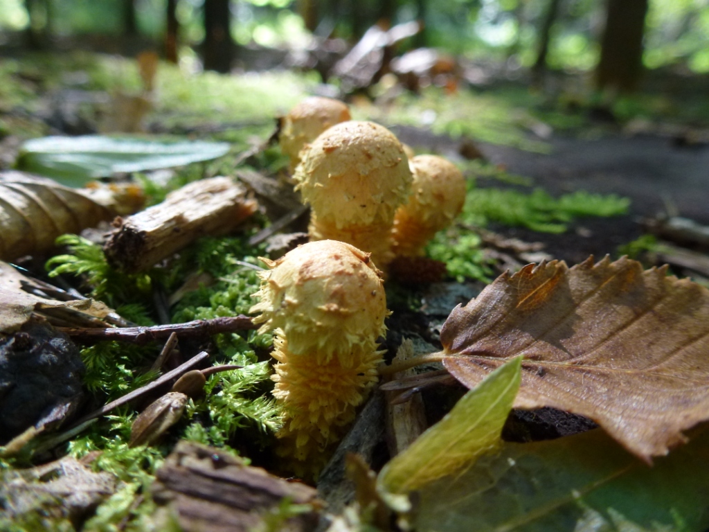 diese wunderschönen Pilze haben wir heute direkt am Wegrand gefunden. Wir haben entschieden sie nicht anzutasten und dieses Ensemble zu zerstören. Ich kann Euch daher nicht wesentlich mehr sagen als dass die Pilze ca. 3 cm hoch waren und in einem Mischwald mit überwiegend Nadelbäumen stehen. Ich glaube sie wuchsen auf Totholz oder auf einem Baumstumpf bin mir aber nicht hundertprozentig sicher.