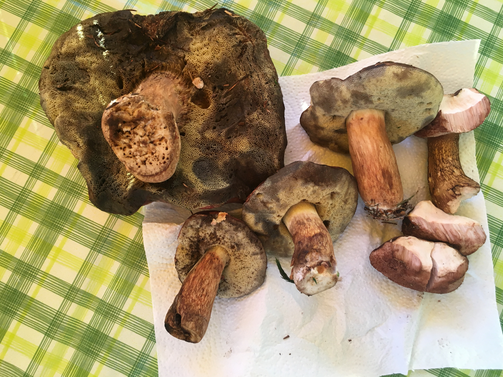 Die Maronen auf dem selben Bild in der Mitte könnten noch ok sein (ebenso wie der Parasol). Falls ja würde man die Röhren wohl besser abmachen und den Stiel wegschneiden, wo er strohig / holzig ist.