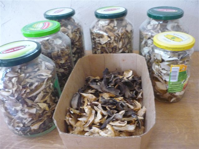 Es gab davon einmal Pilze mit Kartoffeln und zwei Varianten Pilzsuppe.Der Rest wurde getrocknet.