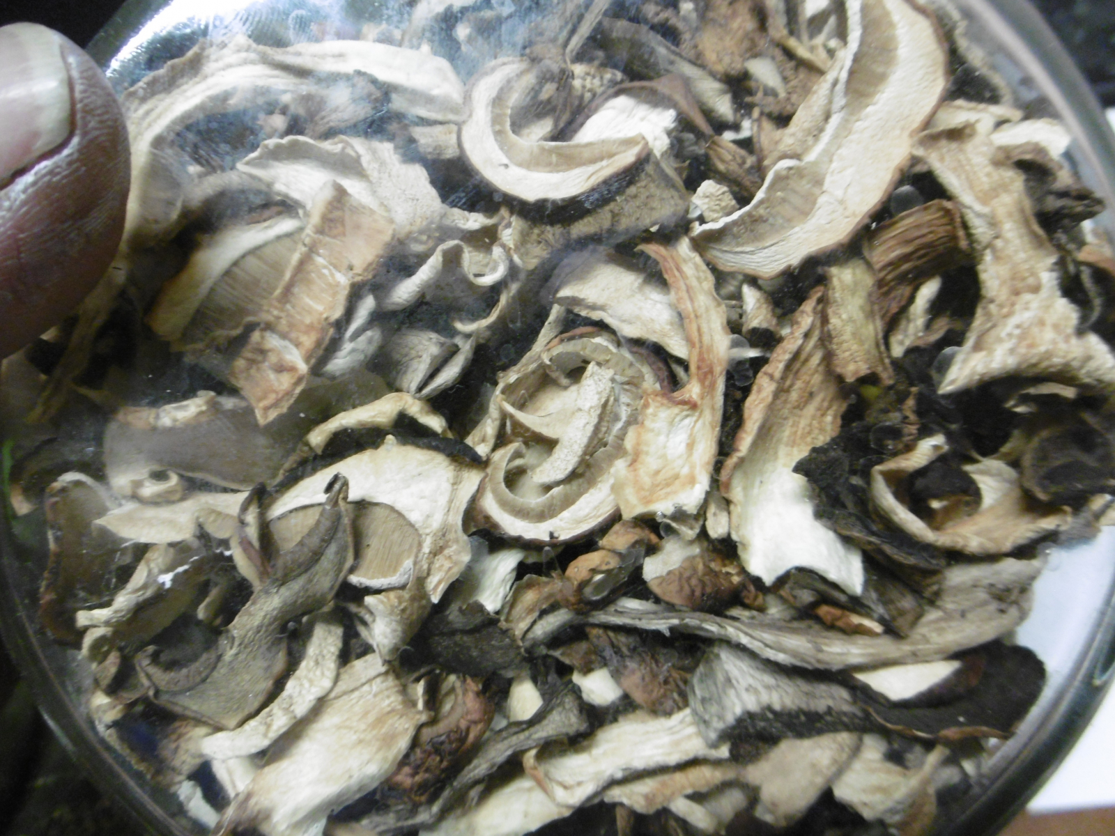 Ich zeige mal noch eine zusammengebatzte Steinpilzgruppe und das Trocknungsergebnis.