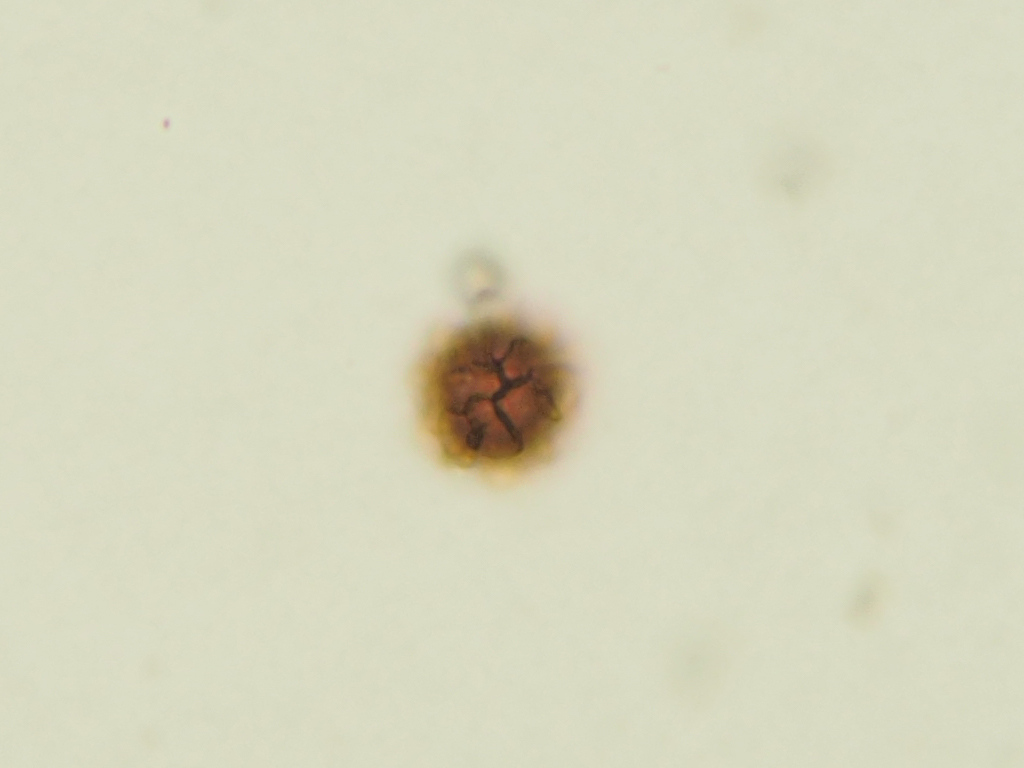 Dank des Hinweises, dass man die hydrophoben Sporen besser nicht in Wasser anschaut, habe ich den Staub in Eukitt gerührt, Luftblasen kurz abzentrifugiert. Somit ist das Präparat jetzt für ewig eingedeckt ;)