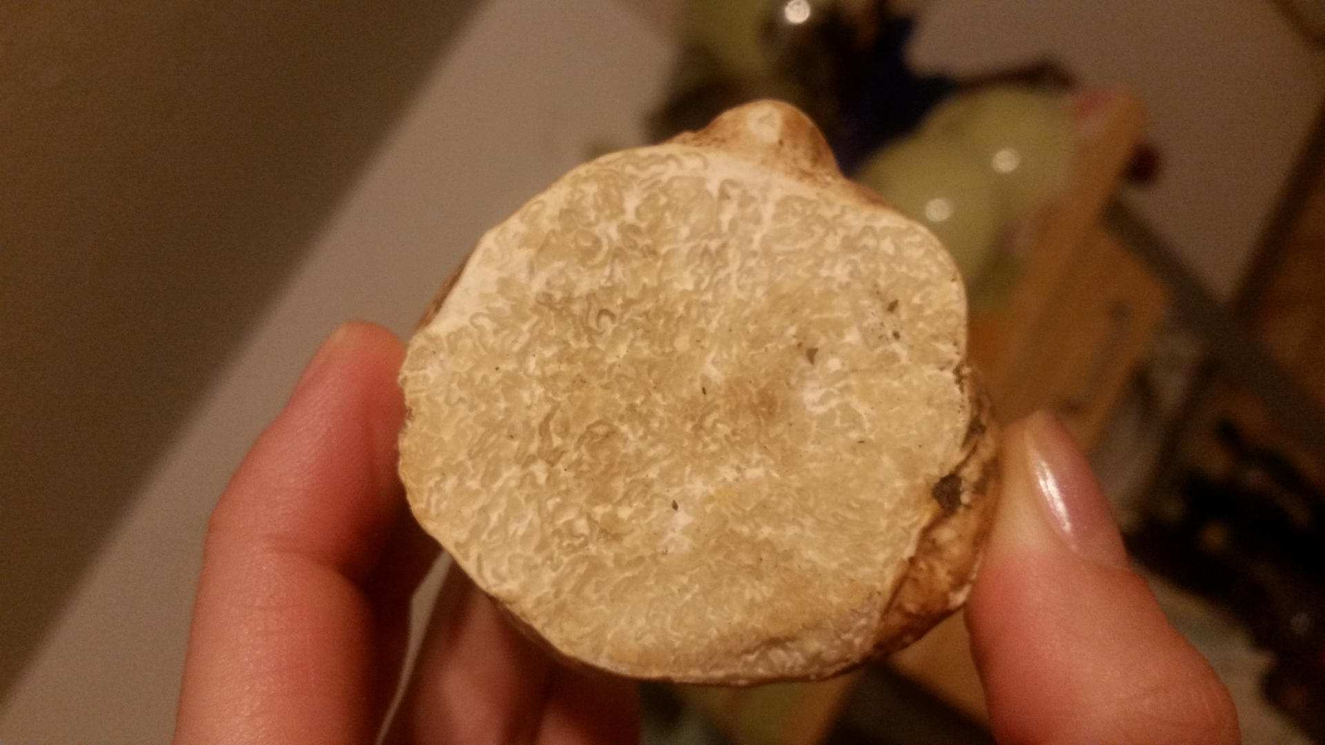 Was mich irritiert ist der Geruch des Pilzes. Beim Mäandertrüffel wird er als sehr eigentümlich beschrieben, marzipanartig oder nach gekochtem Mais, im Alter nach Knoblauch. Der Pilz, den ich gefunden habe riecht nur sehr leicht erdig. Könnte es vielleicht doch etwas Anderes sein? Ich werde ihn, wie Öhrling es vorgeschlagen hat, noch aufbewahren...