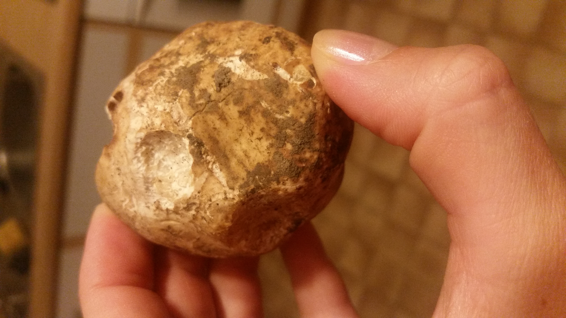 ich habe heute einen Trüffel gefunden und würde natürlich gerne wissen, was genau ich da entdeckt habe. Unterwegs war ich in einem Mischwald (vorallem Buchen und Fichten). Der Pilz lag im Gras, ich habe keine Ahnung wer oder was ihn ausgegraben hat?! Optisch erinnert er an eine Kartoffel. Die Mäandertrüffel könnte passen, aber der Pilz riecht einfach nur leicht "pilzig" und unauffällig. Ich habe von Trüffeln keine Ahnung und bin gespannt auf eure Ideen...