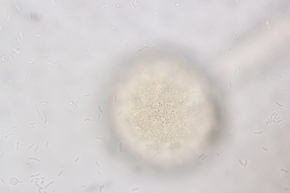Anbei noch ein Mikrofoto von der vermeintlichen Beauveria auf dem Ohrenkneifer: