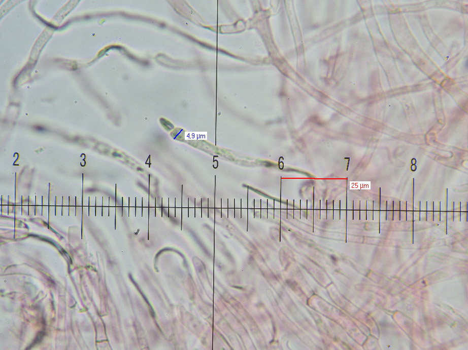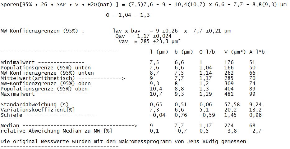 Sporen: (wenige erzwingbar) 9,65 x 7,9mü, V 265mü3, L*B 70, B/L 1,33; gemessen in Melzer nicht Wasser