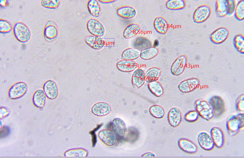 Die Sporen die du zeigst sind elliptisch, teils an einer Seite auch abgeflacht: Das passt eher zu Clavaria candida.