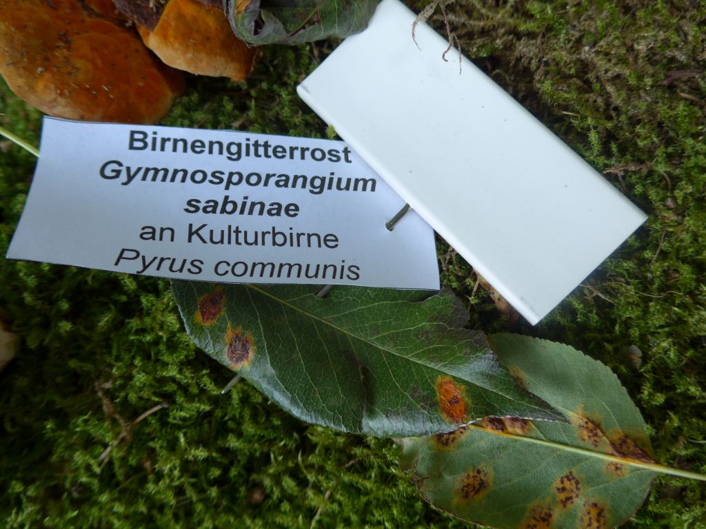 Birnengitterrost Gymnosporangium sabinae : Sehr häufig zu finden an Wachholder und Kulturbirnen.