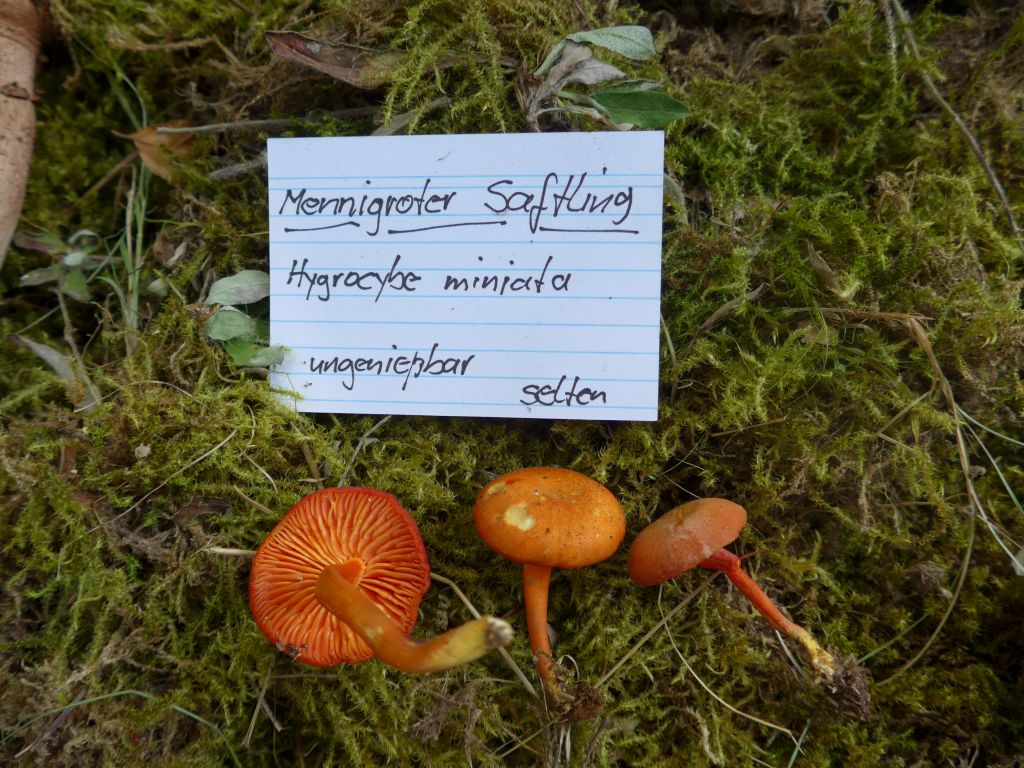 Zu dem Saftling kann ich sagen, dass da noch einiges in Frage kommt. Wichtig wäre da Standort und Geruch gewesen. Hatte am Montag hier auch so einen schuppigen Saftling gefunden, welcher sich dann makros- sowie mikroskopisch als Hygrocybe helobia, Knoblauchsaftling rausstellte. Und ja der sieht H. miniata täuschend ähnlich.