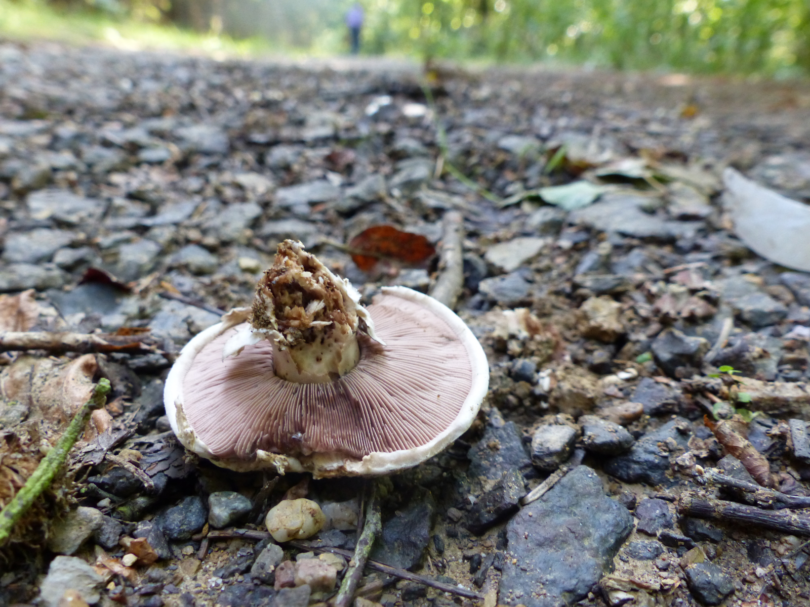 Lamellen: rosa, untermischt, eng stehend, nah am Stiel dran