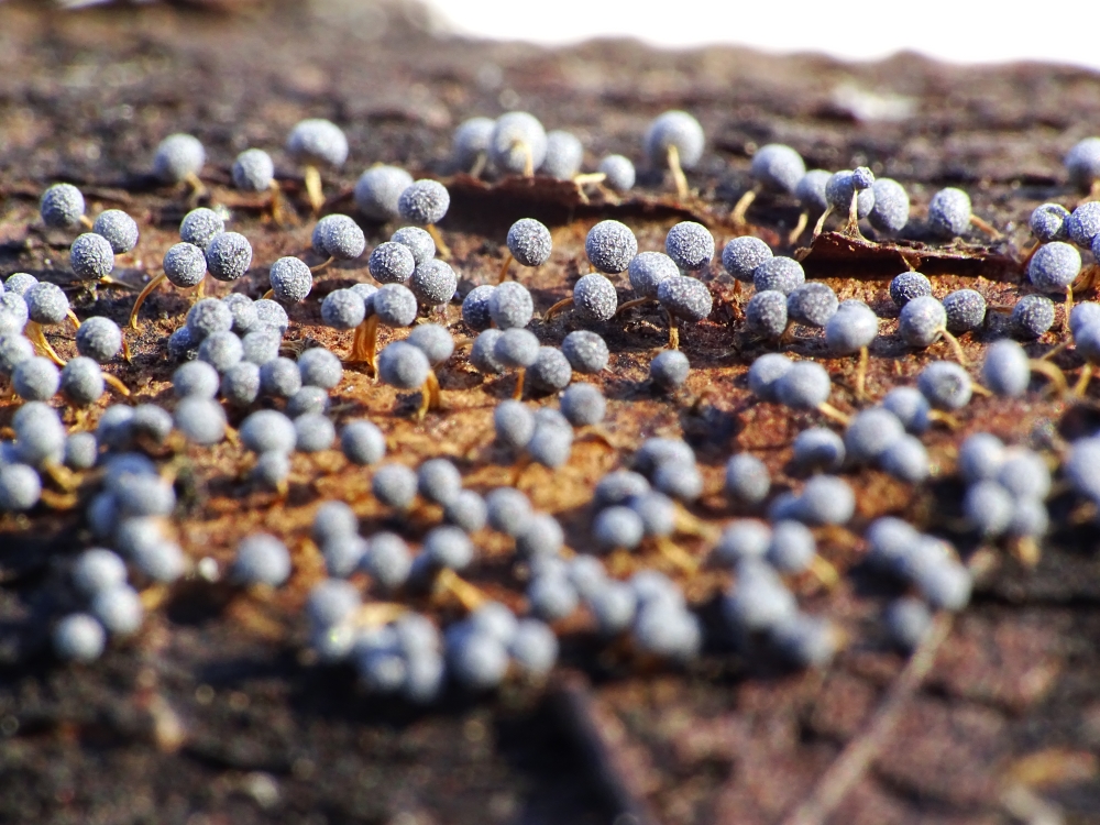 Ich würde denken, dass es sich um Physarum leucophaeum handelt. Ob es nicht doch Physarum nutans sein kann (die gezeigten Köpfchen scheinen allerdings kaum zu nicken), muss Ulla sagen. :)