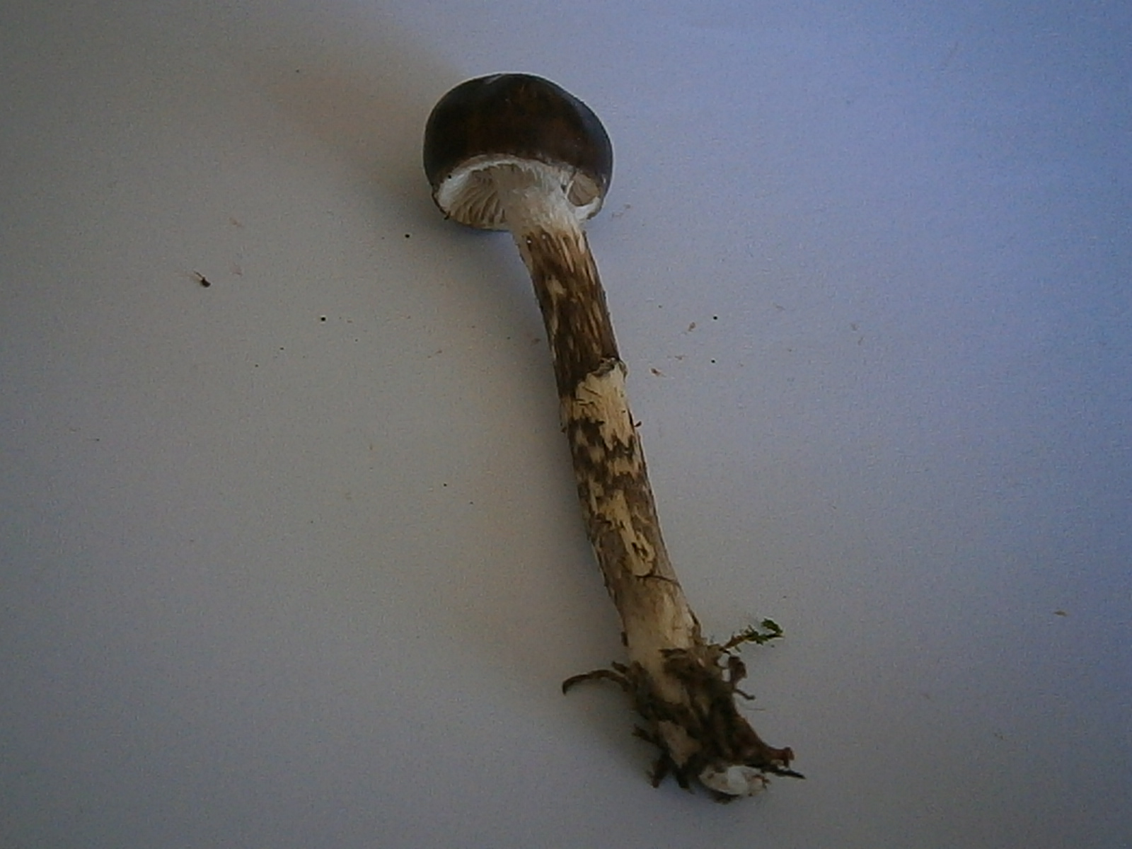 Der Pilz ist ein Erstfund und der dunkelbraune Hut mit bestenfalls leichten Olivtönen verwirrte mich.Mit der char. Natterung tendierte ich ganz stark zu olivaceoalbus