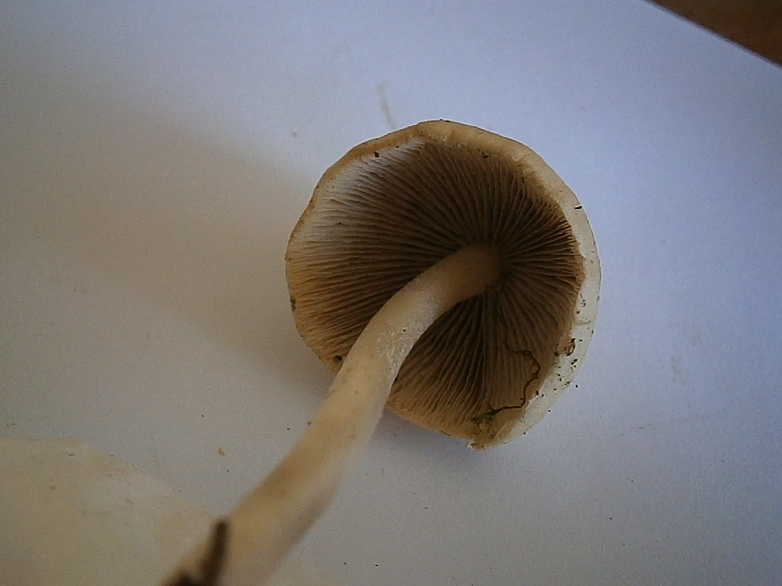 Stiel: hohl, etwas heller als der Hut gefärbt, längsrillig, brüchig - 5cm lang