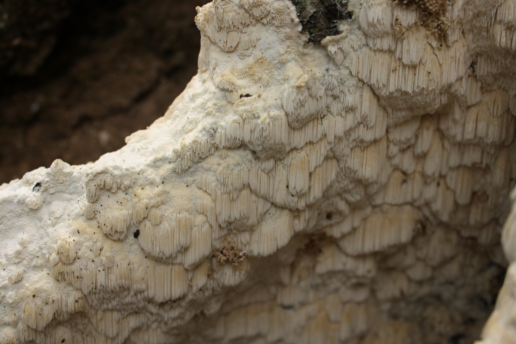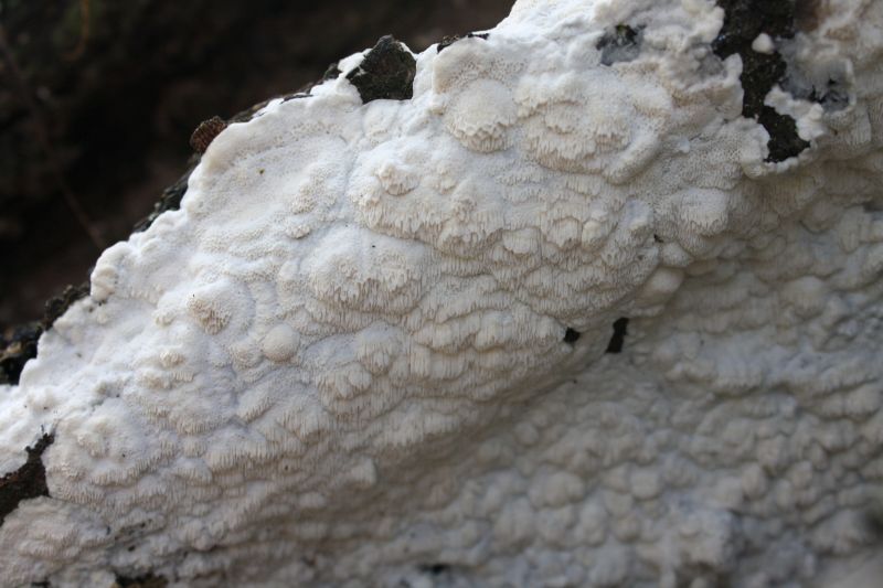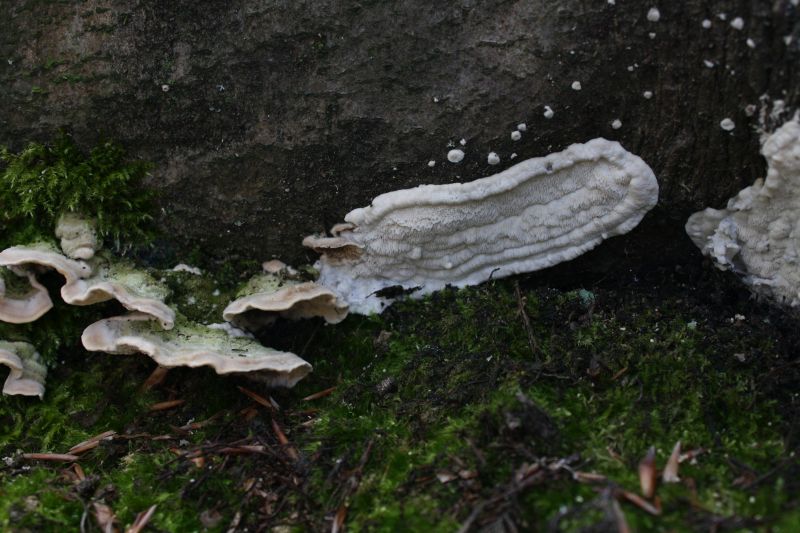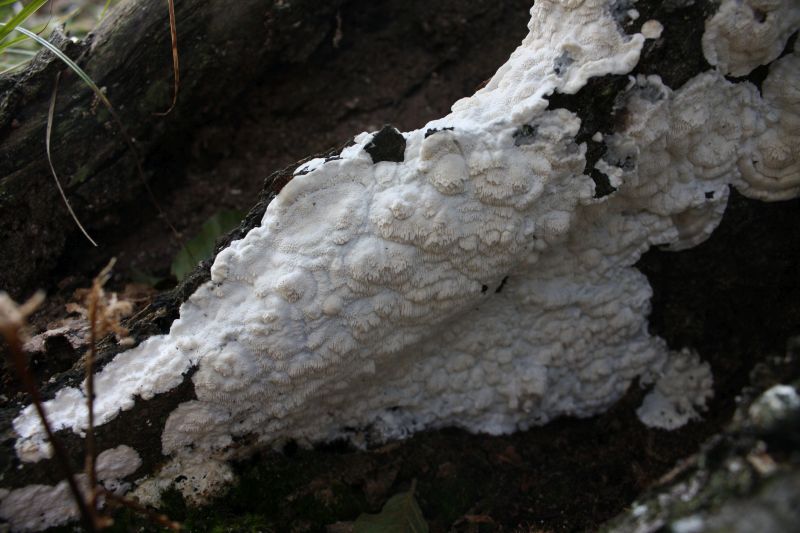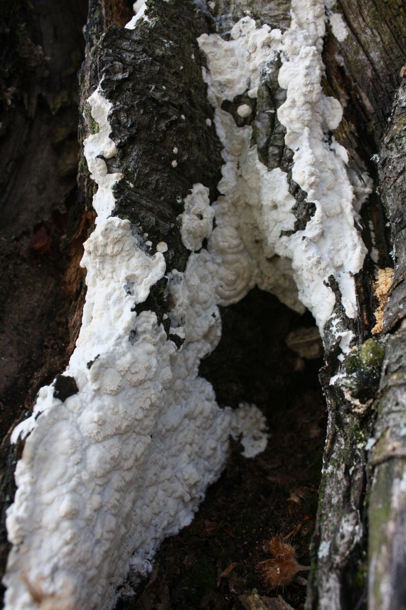 An einem Buchenstumpf fand ich heute diesen interessanten Pilz, zu dem ich eigentlich keine Idee habe. Auffallend war aber, dass auch Trametes hirsuta (Bild 1, etwas alt) direkt daneben wuchs. Kann es sein, dass das die resupinate Form von ebendieser ist? Ich kann es mir kaum vorstellen...