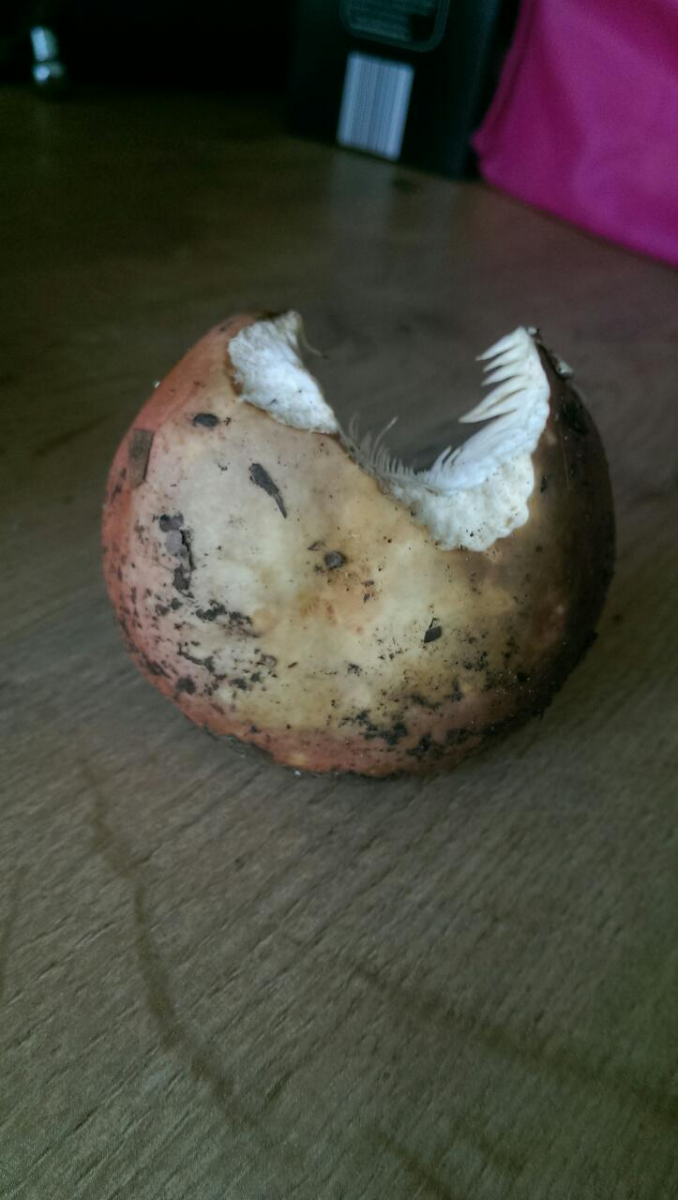 Der Stiel.........paßt dann eher zu einer Amanita. Kann man anhand der Sporen etwas ausmachen? Vllt eine Möglickeit.