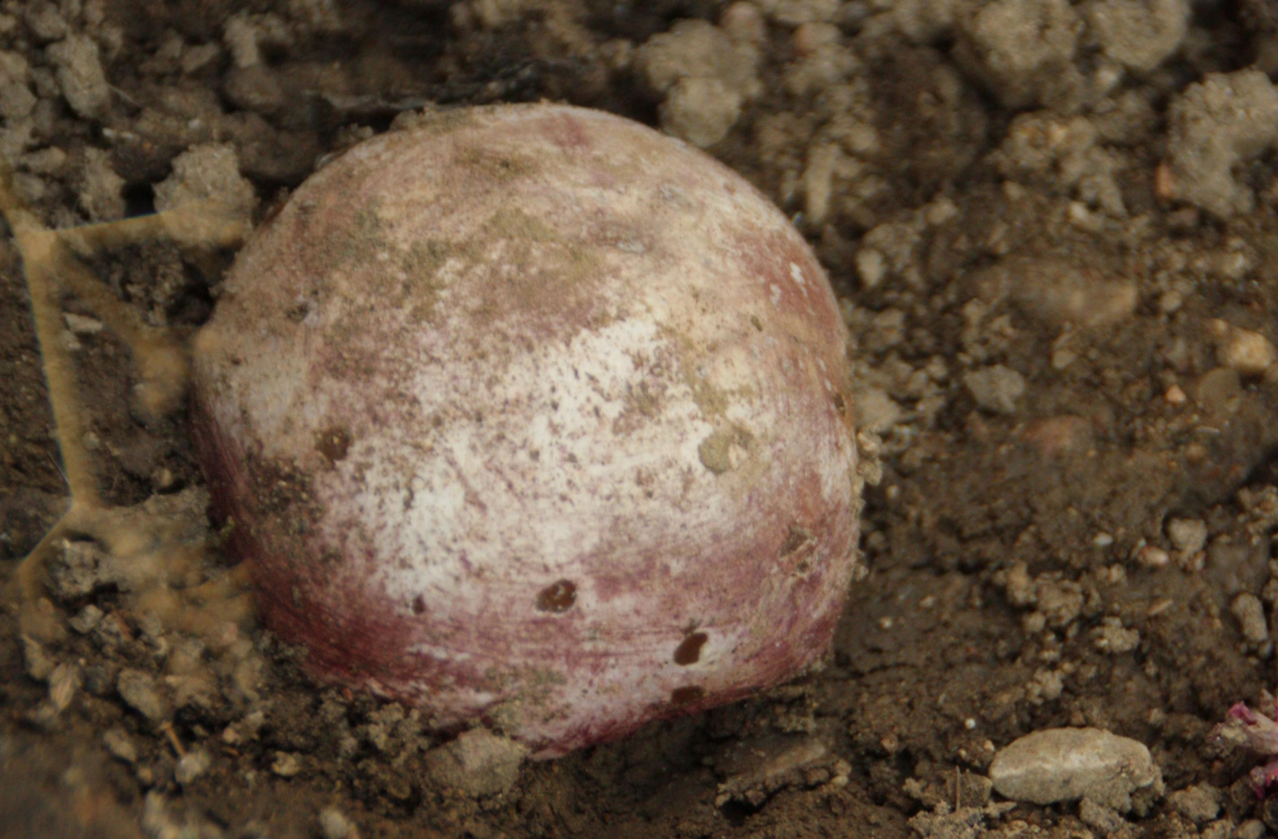 Weißlich, aber Druckstellen färbten sich rasch lila-rosa-bordeaux...