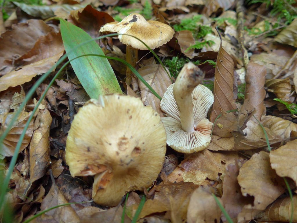 Weiterhin fand ich unter einer Eibe folgendes Pilzchen mit Mehlgeruch und schwärzenden Lamellen nach Verletzung. Mit etwas Unterstützung von Björn haben wir den als Lyophyllum armariusculum (Bitterlicher Schwärzling) bestimmen konnten. Der Name passt, denn der schmeckt wirklich bitterlich. Eine Bemerkung möchte ich an der Stelle auch noch machen. Bei vielen Funden werde ich keine deutschen Namen verwenden, zum einen, weil es für die Pilze teilweise keine gibt, zum anderen, weil ich es etwas unsinnig finde, deutsche Namen zu zu jedem Pilz nun unbedingt erfinden zu müssen, wie es teilweise in PDS gemacht wurde.
