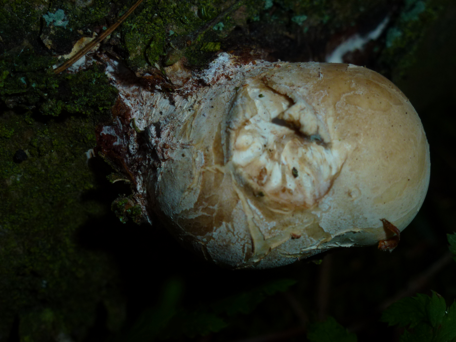 3) k.A. irgendeine Bovist- oder Stäubling-Art? der wuchs ganz aufrecht auf einem liegenden, toten, doch jungen Birkenstamm, vielleicht ein komisch geformter Birkenporling?