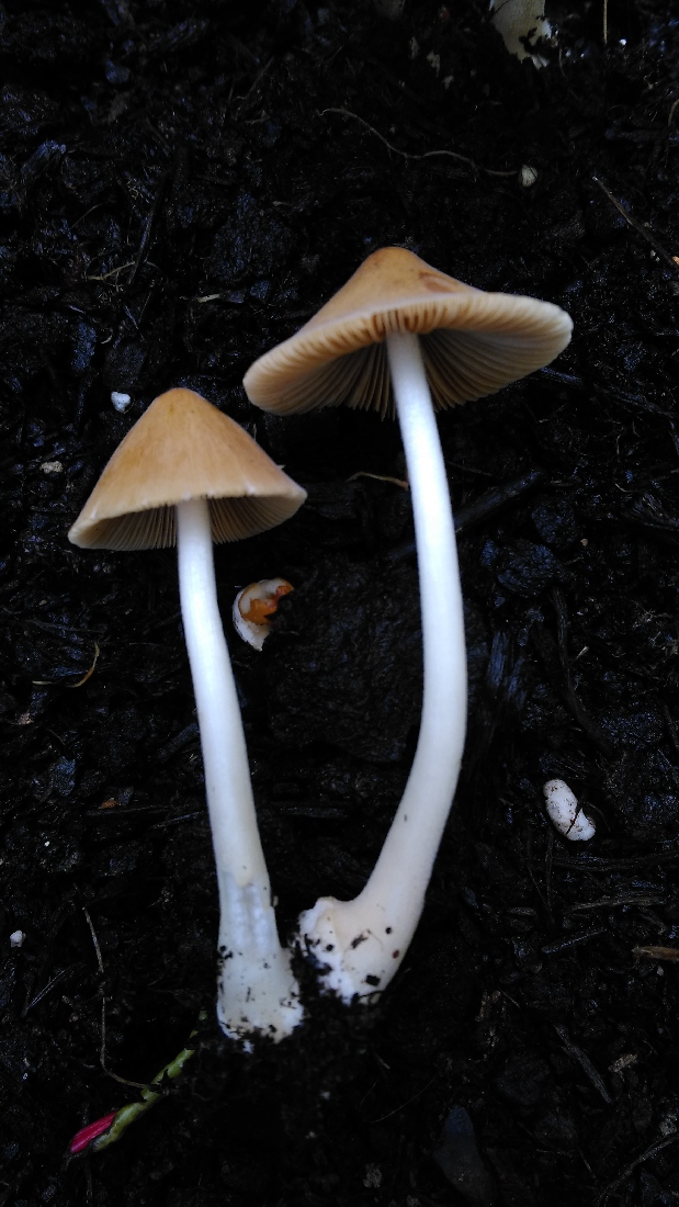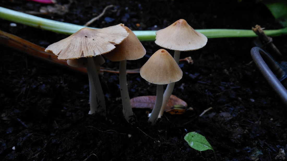Fundort: Hochbeet im Garten. Pilze teisl einzeln stehend, teils bilden 2..3 Exemplare ein Büschel.