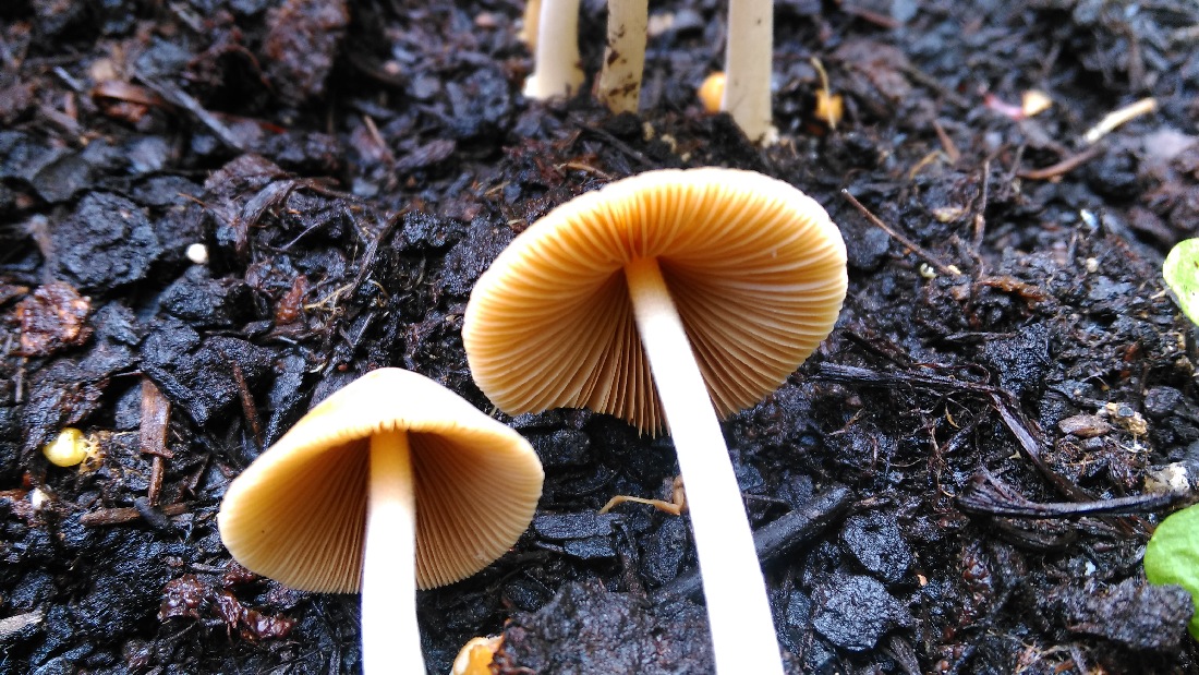 Fundort: Hochbeet im Garten. Pilze teisl einzeln stehend, teils bilden 2..3 Exemplare ein Büschel.