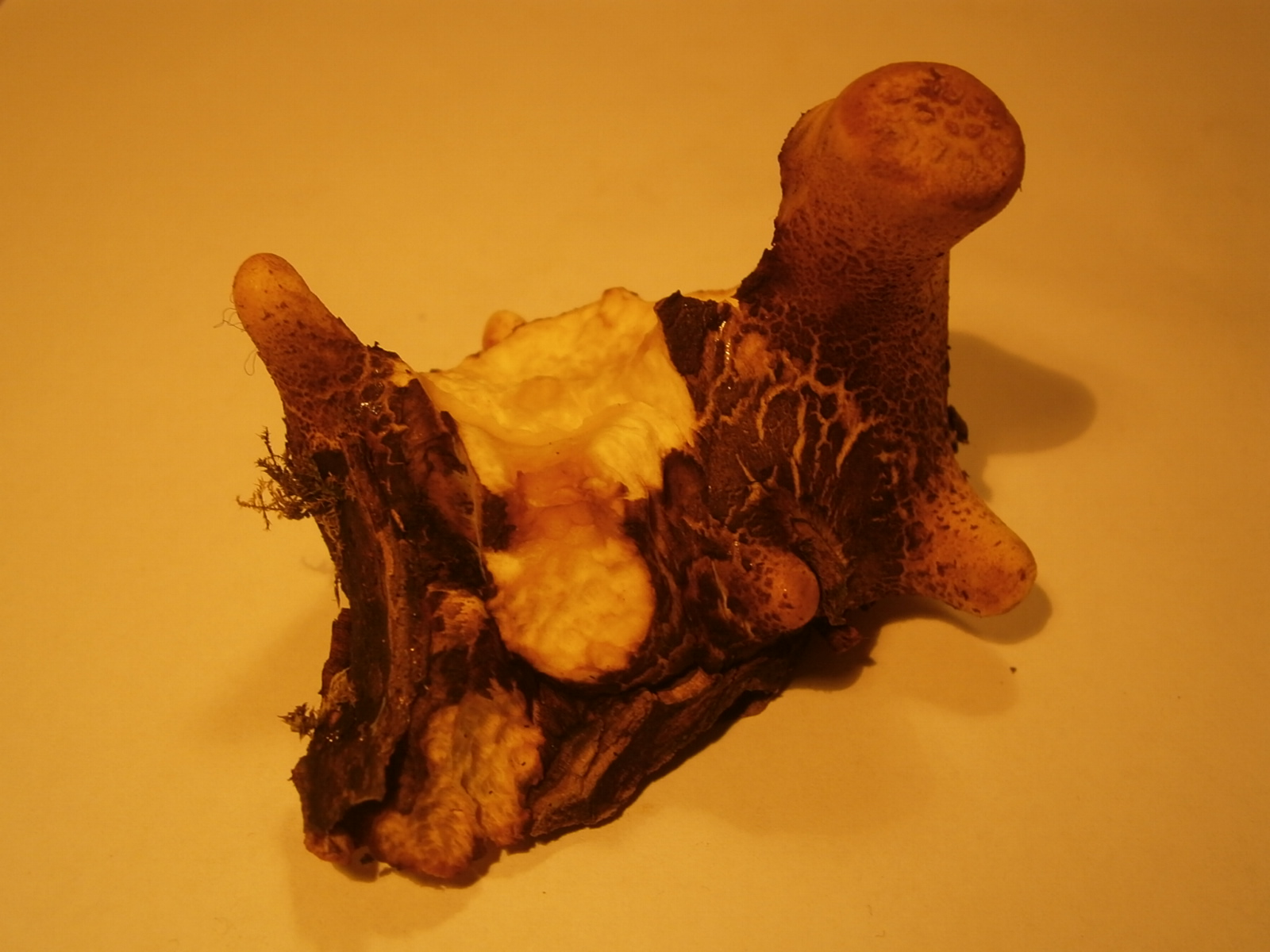 - Oberfläche cremefarben bis tabakbraun, gefeldert, feinsamtig