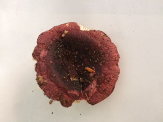 Rein aus Wissensdurst haben wir den lilanen Pilz mitgenommen, der Stiel ist leider nicht mehr vorhanden.