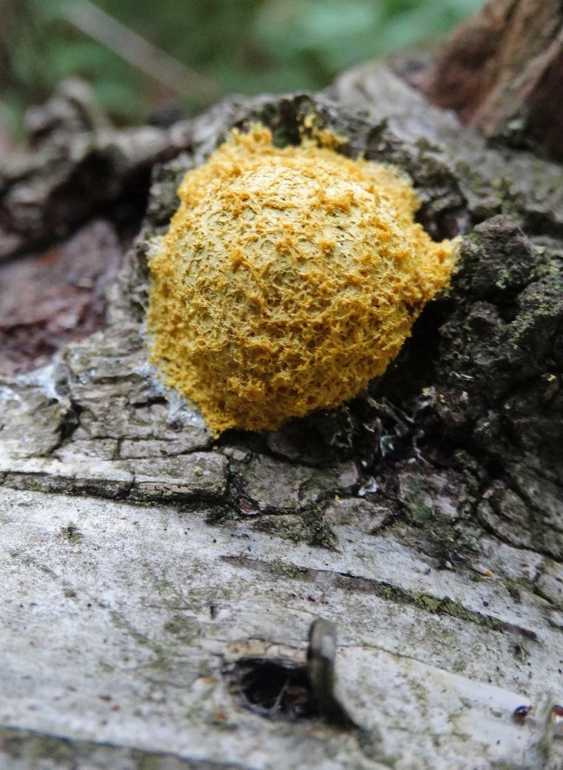 Das Gelbe könnte eine Gelbe Lohblüte sein, aber da gibt es glaube ich noch andere gelbe Schleimpilze - wie gesagt, so sehr bin in in dem Gebiet nicht fit.