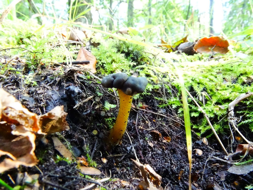 In diesem Jahr habe ich noch keinen anderen Röhrling so häufig gesehen, Pseudoboletus parasiticus, parasitischer Röhrling auf Scleroderma citrina, dickschaliger Kartoffelbovist.