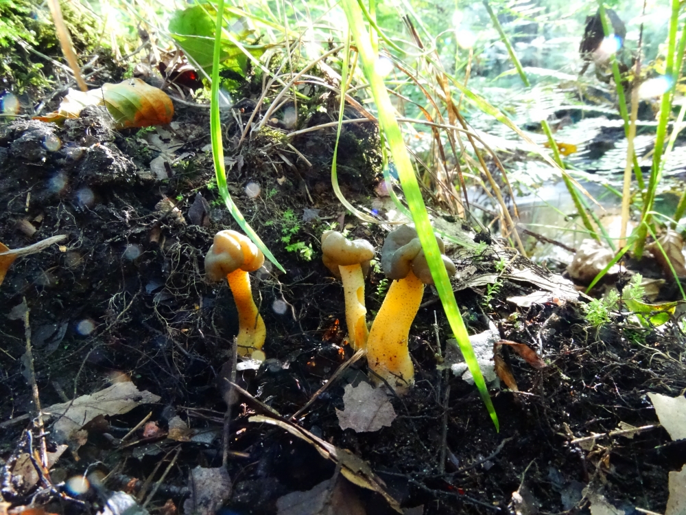 Direkt im Matsch am Bachufer, Leotia lubrica,grüngelbes Gallertkäppchen