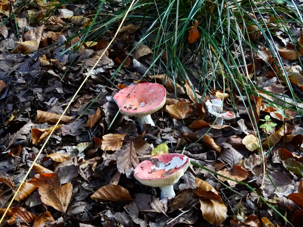 rote Täublinge, evtl. Russula mairei, Buchen-Speitäubling