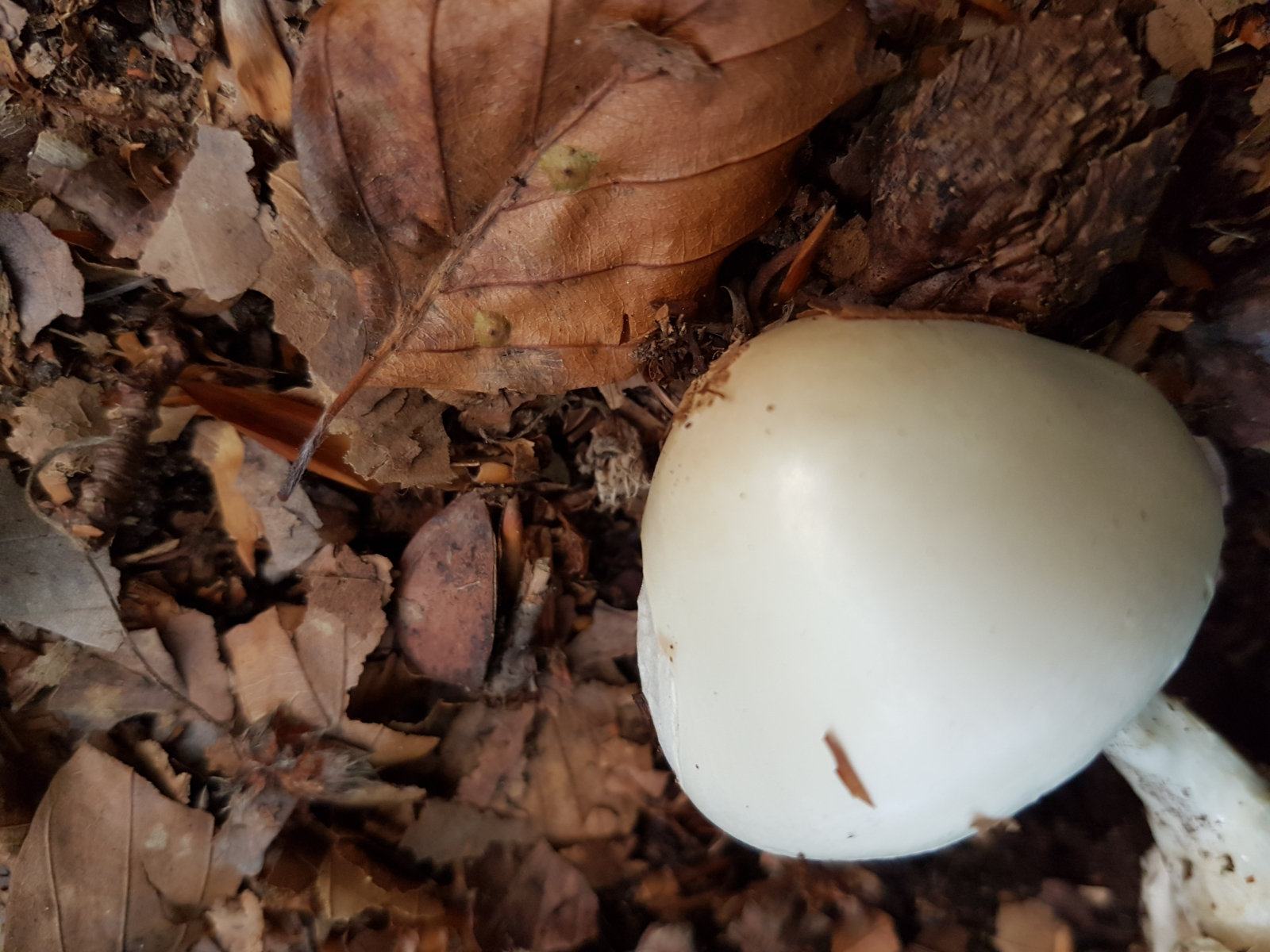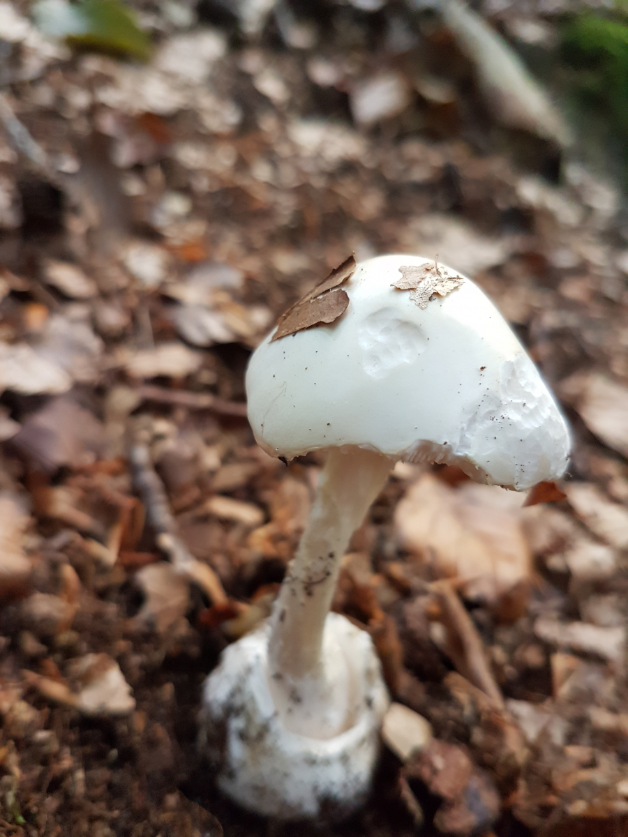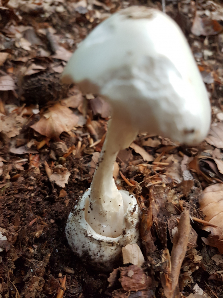 Zuerst dachte ich an den grünen Knollenblätterpilz, aber ich konnte beim besten Willen keine grüne Färbung erkennen.