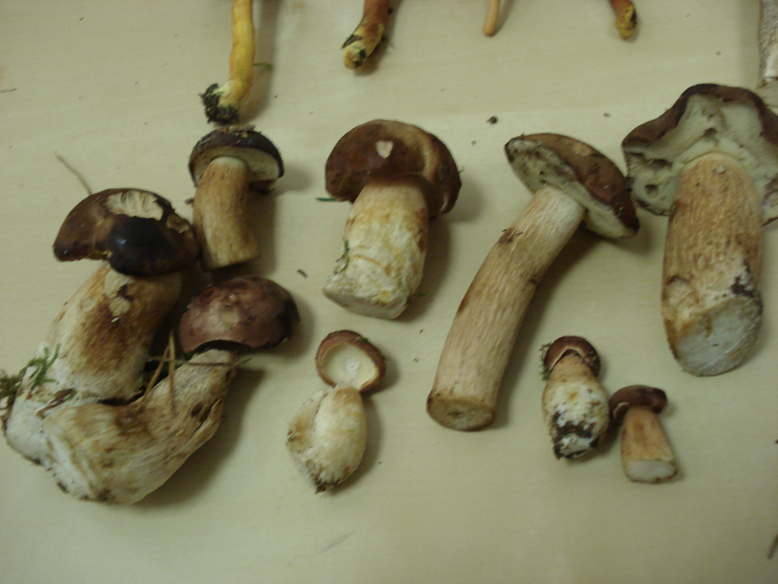 Und von einer heutigen kurzen Tour die Ausbeute: Von oben links nach unten rechts: Maronen, Flocki, Birkenpilze, Steinpilz, Edelreizker, Flaschenstäublinge, Violette Lacktrichterlinge und noch ein paar Pfefferröhrlinge.