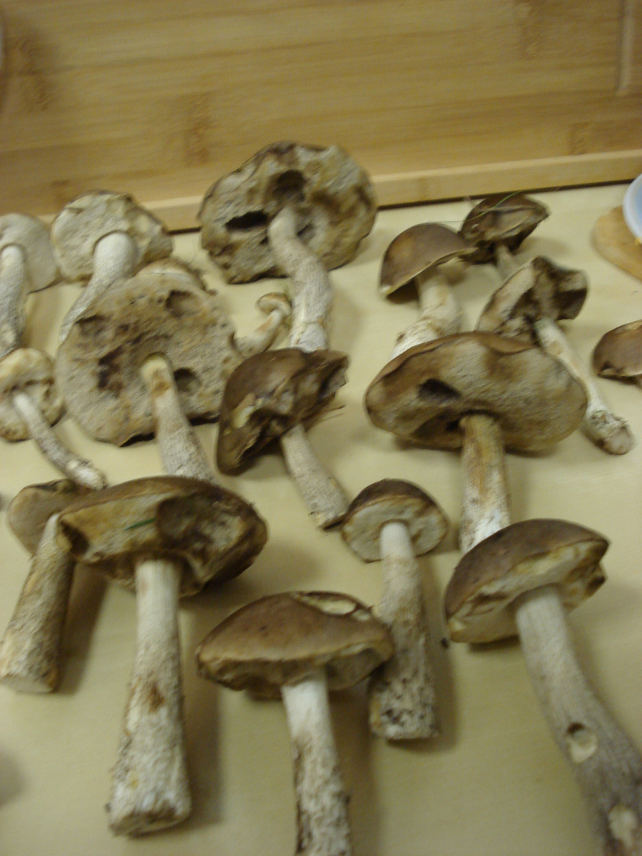 was mich etwas stört: Warum hast du die alten Schlappen der Birkenpilze überhaupt mitgenommen. Die hätten ruhig im Wald stehen bleiben können. :( So was erkennt man doch eigentlich vor Ort. Wenn die zum Verzehr nix mehr taugen, da zu alt, sollte man sie ruhig stehen lassen.